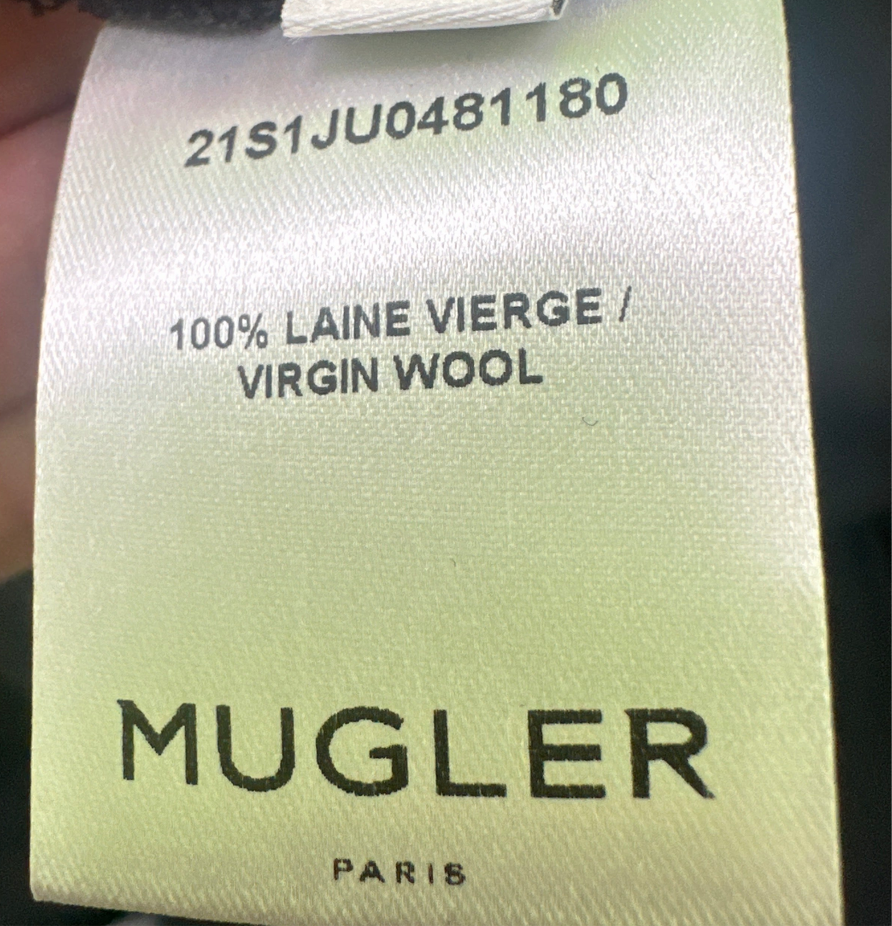 Vintage Thierry Mugler black pencil skirt, defined by the house’s signature architectural tailoring. Crafted in a structured mid-weight fabric, the skirt features a high waist, clean straight hem, and a sculptural inset panel along the right side that creates subtle contour and dimension. Finished with a concealed side zip for a precise, body-skimming fit. A sharp, minimalist example of Mugler’s power-era design—timeless, assertive, and impeccably cut.