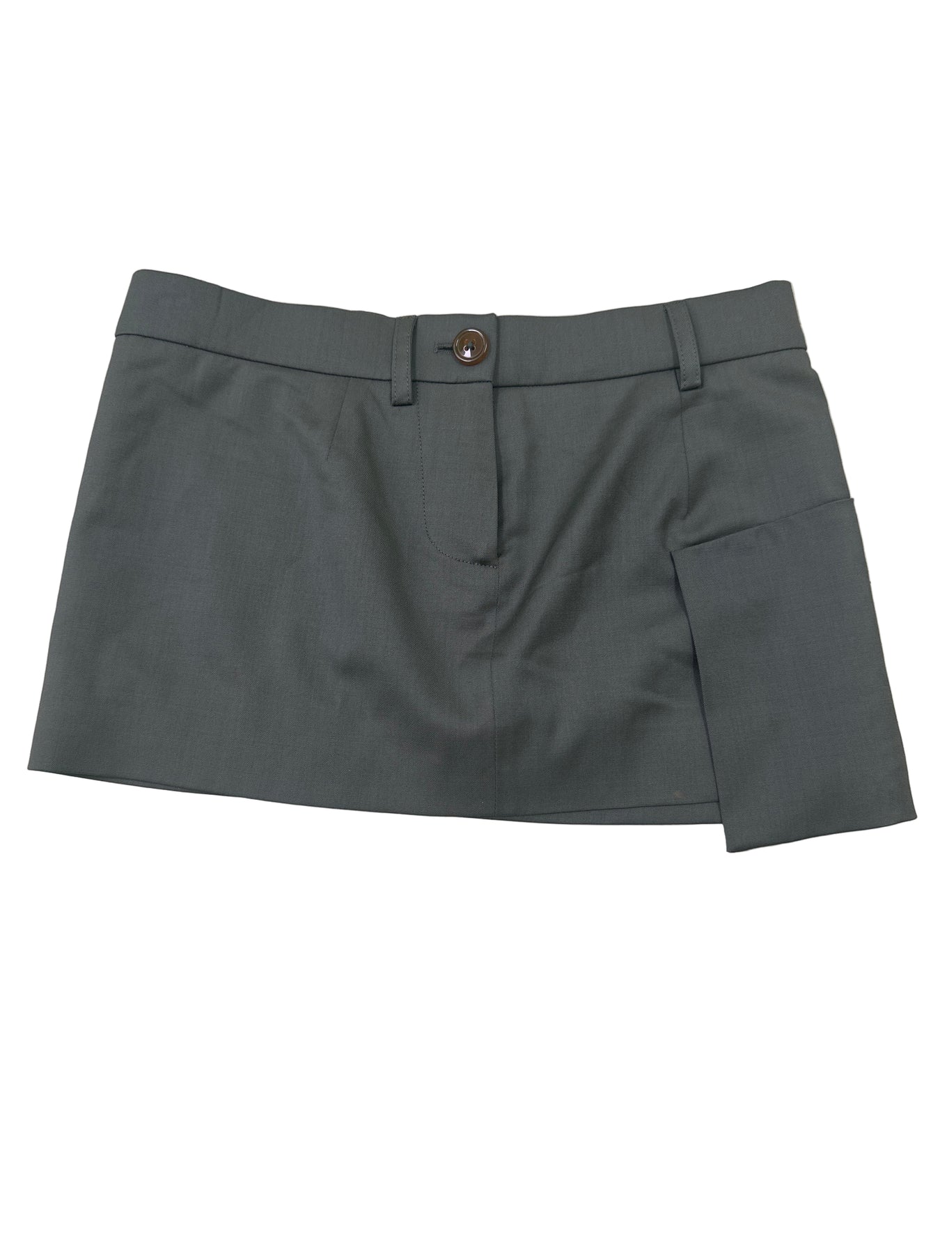 Nobody redefines workwear quite like Vivienne Westwood—sharp, subversive, and unapologetically feminine. The classic hemline is disrupted by an asymmetrical panel, adding an unexpected edge, while the low waistband balances its daring micro length. Finished with belt loops for pairing with your favorite statement belt.